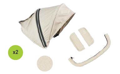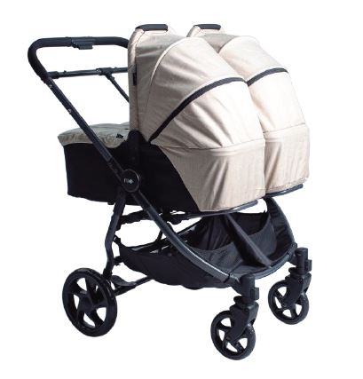 Pack que incluye – Estructura gemelar + 2 capotas + 2 capazos + 2 capotas de capazo