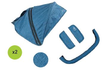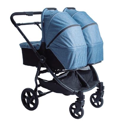Pack que incluye – Estructura gemelar + 2 capotas + 2 capazos + 2 capotas de capazo