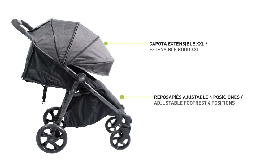 Capota extensible XXL y reposapiés ajustable en 4 posiciones