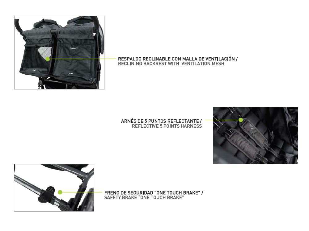 Para los padres más exigentes que requieran un sistema de paseo que se adapte a sus necesidades específicas, como cuando tienen dos gemelos o hijos de edades próximas. Para ellos está diseñado el VentTwin con el que podrán adaptar los diferentes accesorios para un uso personalizado.